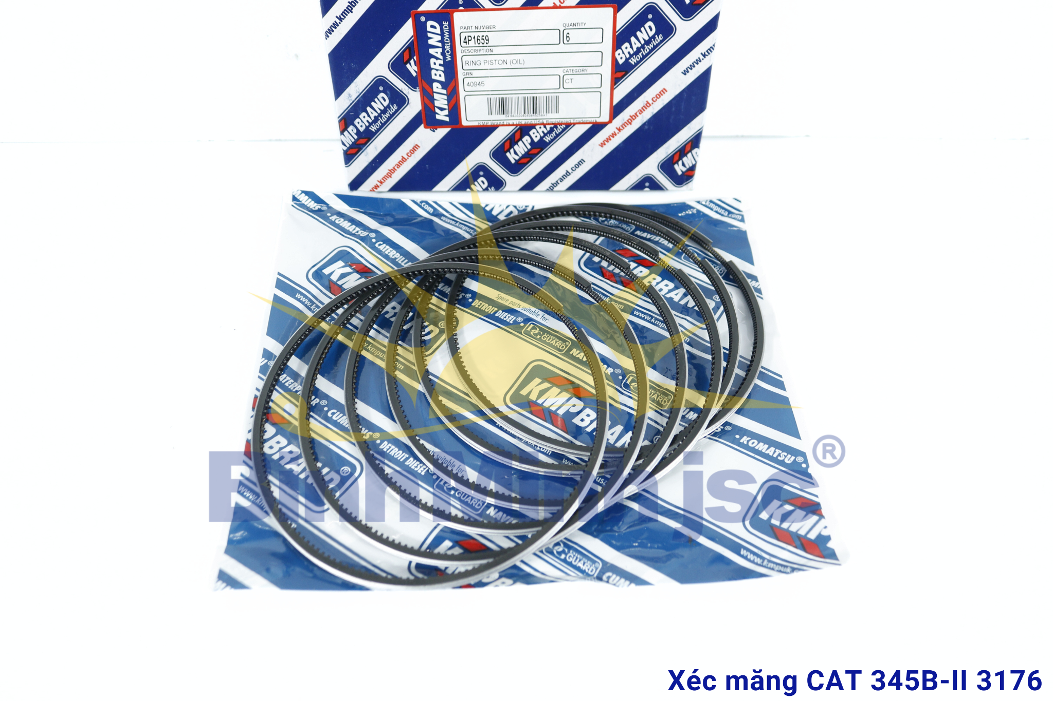 Xéc măng dầu KMP-UK mã 4P1659 được sử dụng cho động cơ CAT 3176 trên máy xúc 345B-II. Đây là vòng xéc măng có nhiệm vụ kiểm soát dầu bôi trơn trên thành xy lanh, đảm bảo lượng dầu vừa đủ để giảm ma sát nhưng không lọt lên buồng đốt. Sản phẩm được sản xuất theo tiêu chuẩn Anh Quốc, có độ đàn hồi cao, khả năng chịu nhiệt tốt và độ kín khít đạt chuẩn, giúp động cơ vận hành ổn định và bền bỉ.
